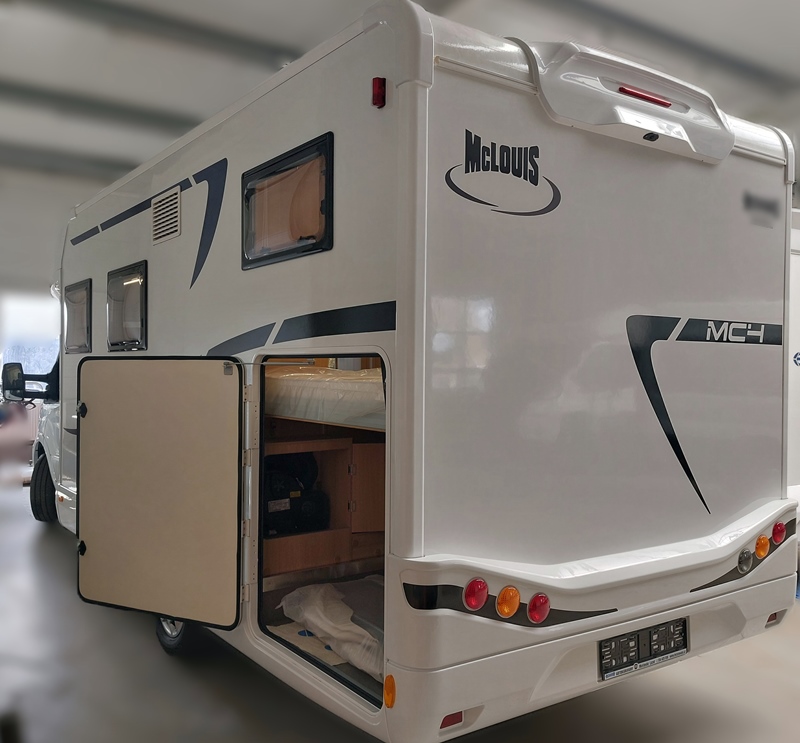 McLouis MC4 260 je ideální volbou pro ty, kteří chtějí výkonný a úsporný motor (170 koní) pro pohodlné přejezdy hor či dlouhých vzdáleností a zároveň kompaktní vůz do 7 metrů, se kterým se dobře manévruje. Jeho velkou předností je obří garáž (díky výškově nastavitelné posteli lze zvětšit výšku), do které schováte bezpečně vše od elektrokol a sportovní výbavy až po gril. Má chytře řešený vnitřní prostor s moderním LED osvětlením a XXL vstupními dveřmi, díky kterým nezasahuje přední postel do vstupu, což je u takto kompaktního vozu ojedinělé, a i u našeho většího vozu MC 4 873 spouštěcí postel do dveří zasahuje. Příjemné je také prostorné posezení pro 6 osob kolem stolu, což mohou opět závidět i některé naše větší modely.