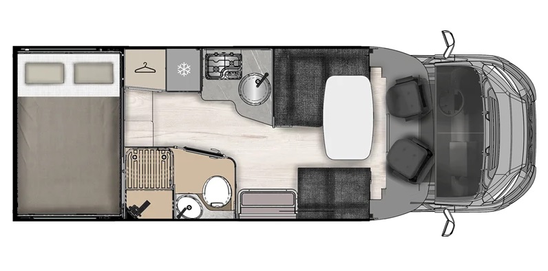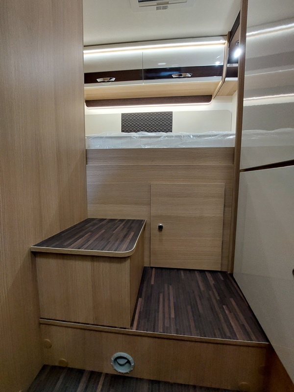Tento model je oblíbený pro svou kompaktní délku do 7 metrů, a přesto nabízí obrovskou garáž a komfortní spaní.